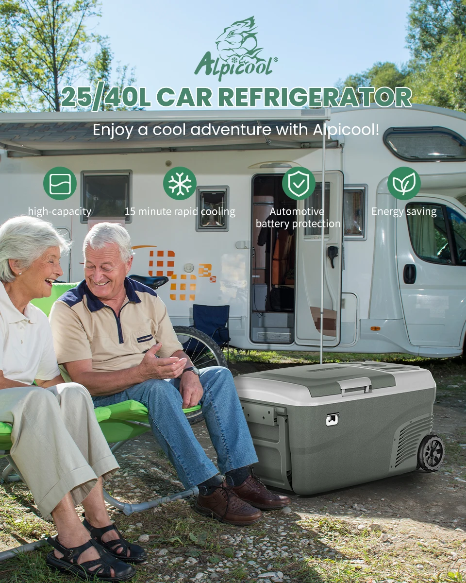 Alpicol DC 25L 40L ثلاجة سيارة محمولة 12 فولت ضاغط ثلاجة فريزر منطقة مزدوجة مع عجلة ومقبض للتخييم والنزهات