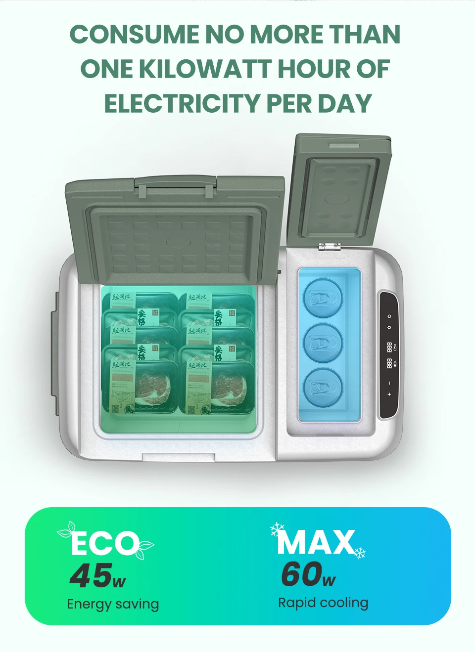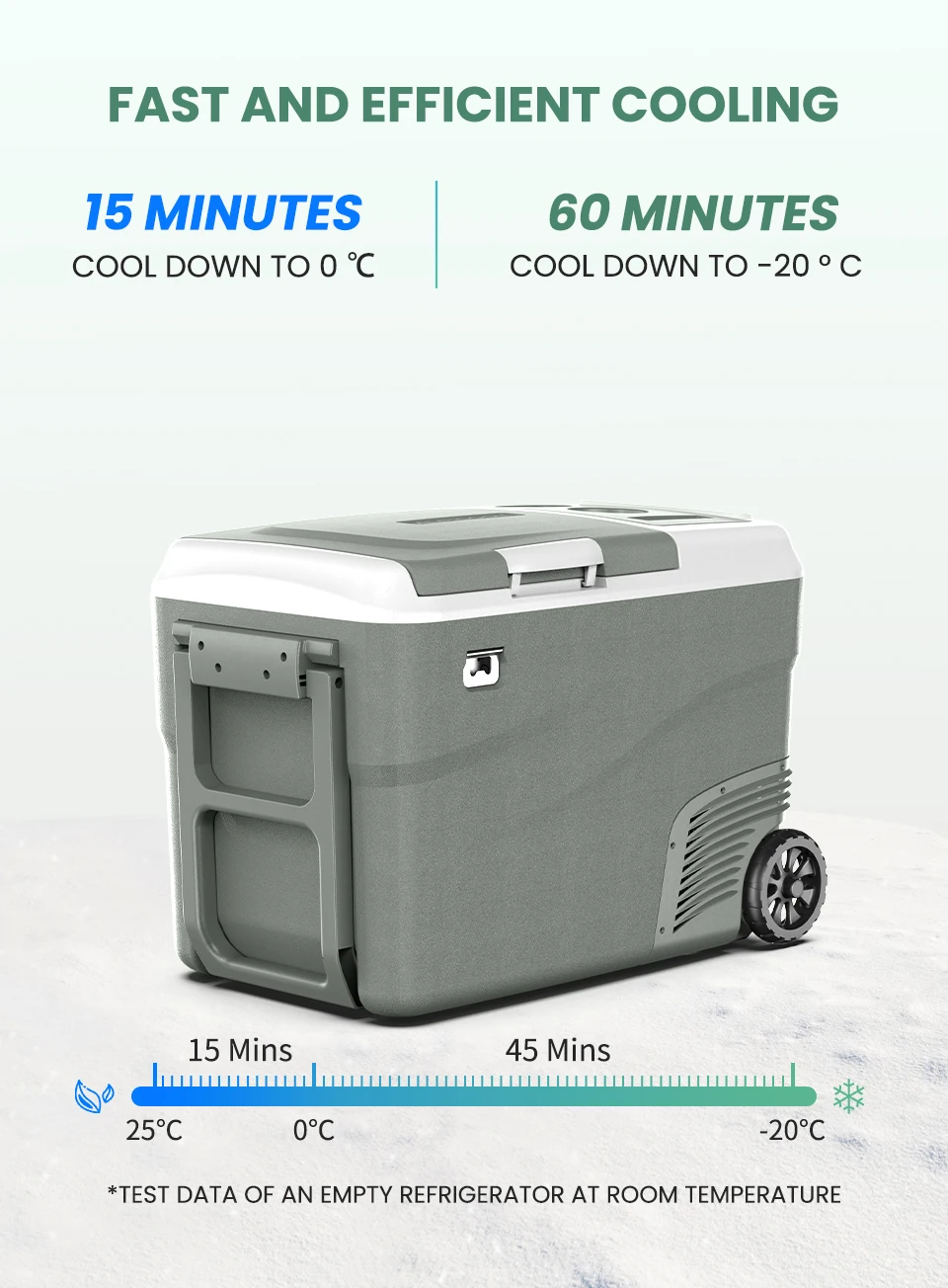 مجهزة بضاغط عاكس تيار مستمر قوي وفعال يمكن أن ينخفض من 25 درجة مئوية إلى 0 درجة مئوية في 15 دقيقة ، يمكنك الحصول على التبريد بسرعة كما تريد عن طريق تشغيل وضع التبريد الأقصى! استمتع بالراحة التي توفرها لك ثلاجة ألبيكول المحمولة أثناء رحلتك.